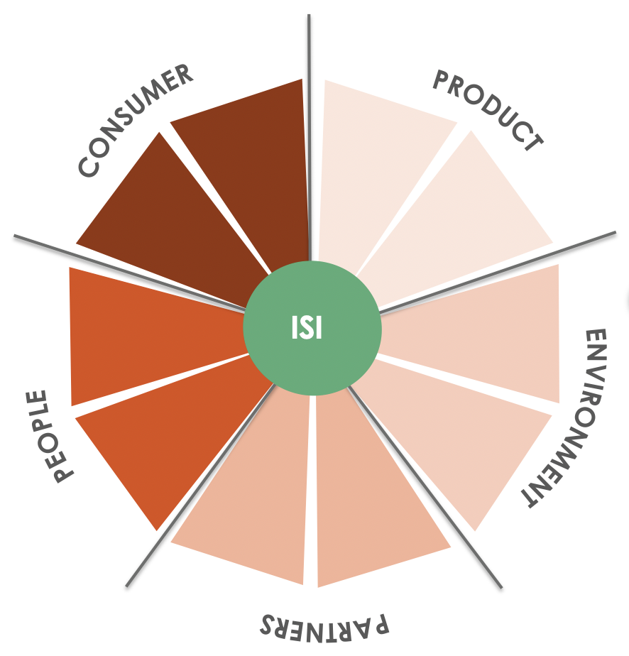 We have developed the tool - an Integrated Sustainability Score (ISI) - to be always in control of your progress towards sustainability. We have defined Top 5 focus areas which we help monitor and research: